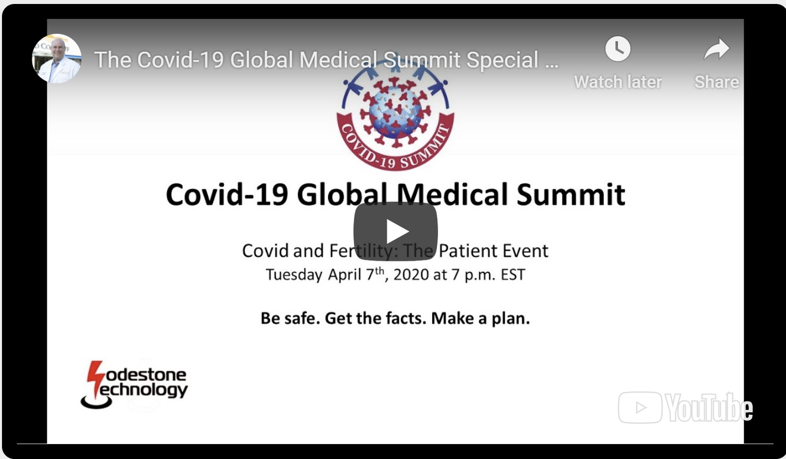 This Covid-19 Global Medical Summit is the first just for fertility patients. People who suffer from infertility have been thrown into a terrible medical bind by the Covid-19 pandemic. ASRM recently released guidelines that halted all infertility treatments in the United States.