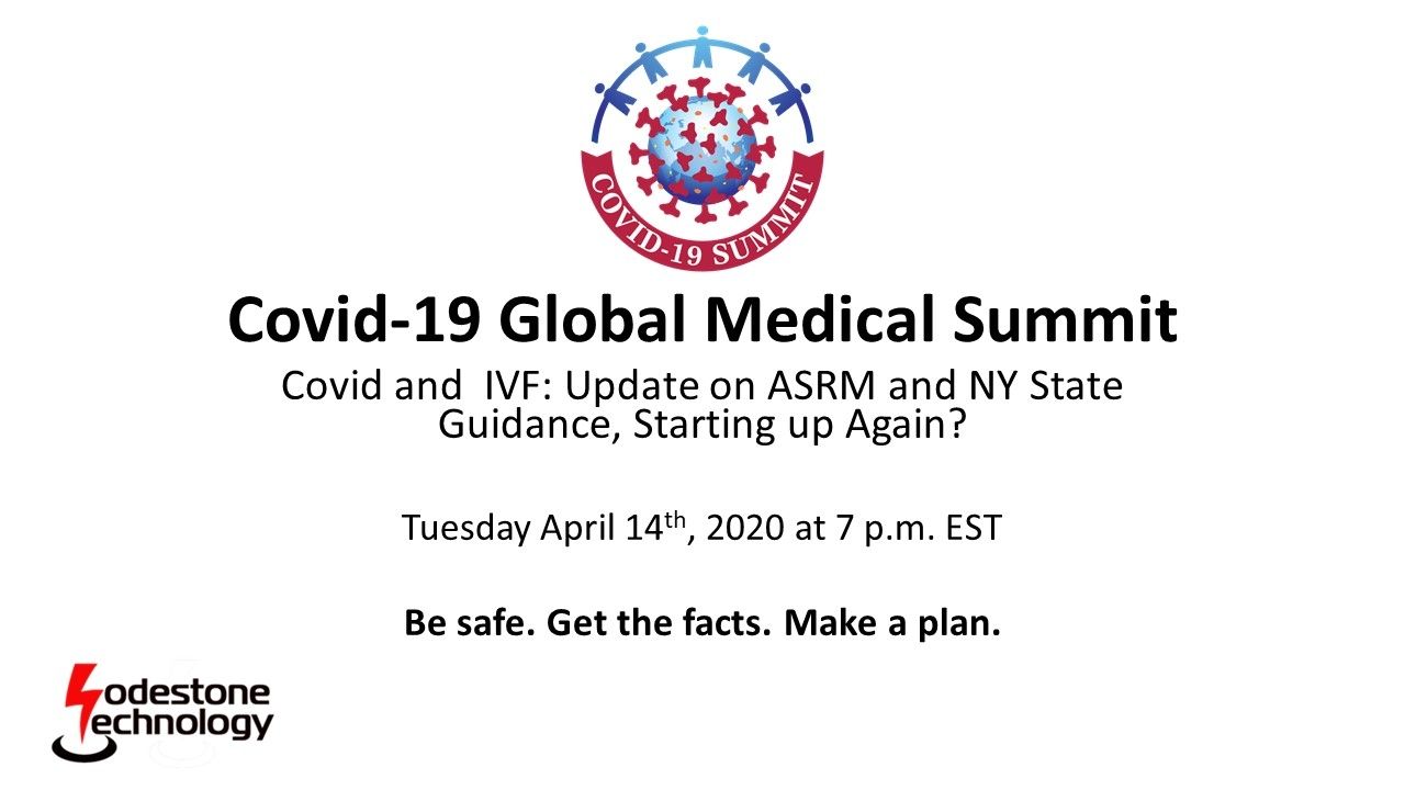 This Summit is the first just for fertility patients. People who suffer from infertility have been thrown into a terrible medical bind by the Covid-19 pandemic. ASRM recently released guidelines that halted all infertility treatments in the United States.